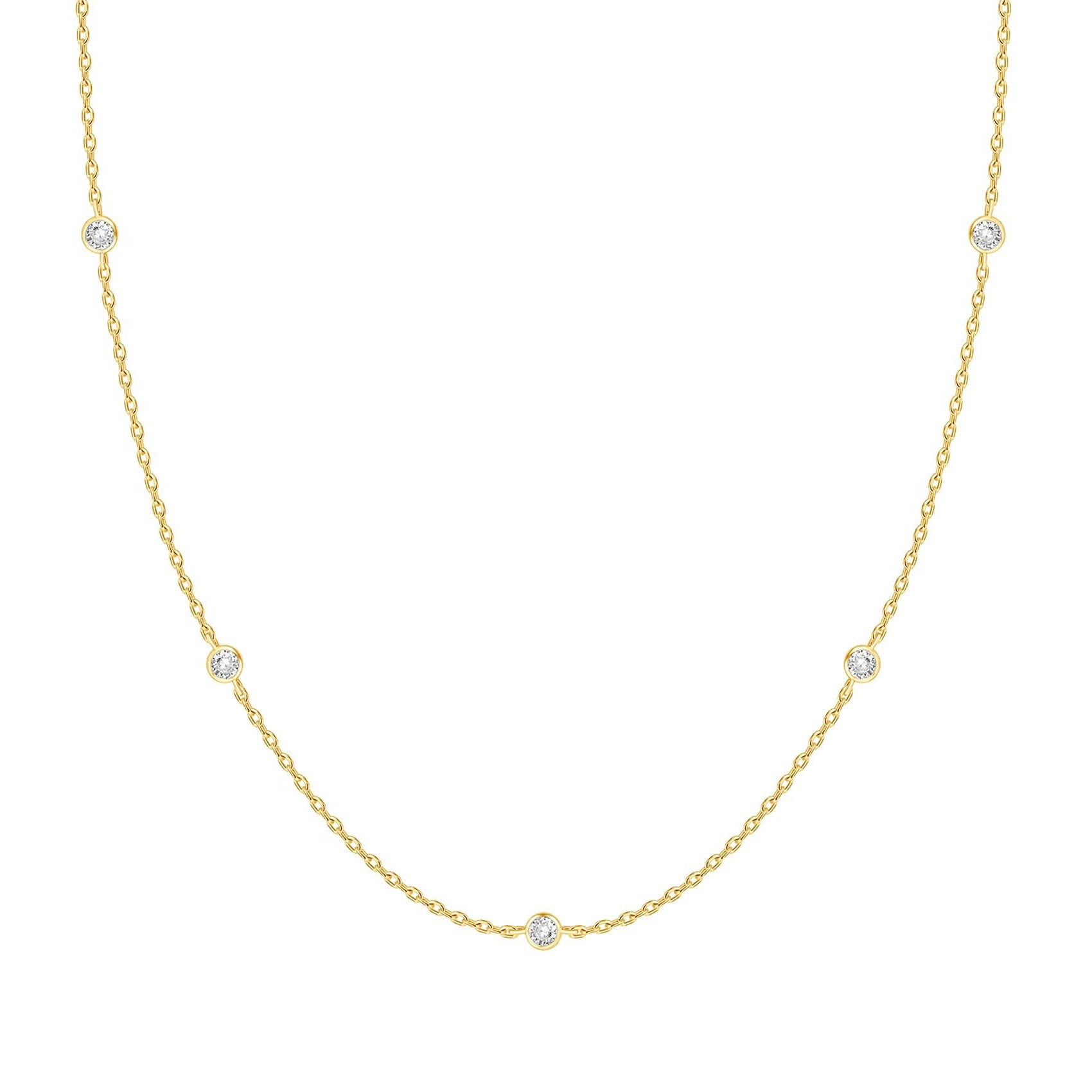 • Our 14K plated gold chain Choker Necklace features CZs bezel set in five stations on a beautiful cable chain link.